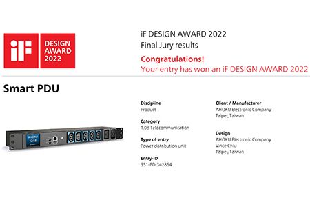 為優化Data Center 電源管理,歐格電子「智能電源PDU」具遠端監控功能、能源管理及前瞻性的設計平台,提供高效率電源管理作業環境,經國際設計專家評審,榮獲「設計奧斯卡」之稱的2022 iF設計大獎