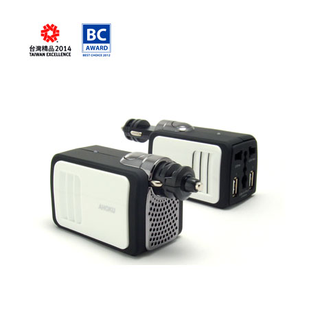 100W電源逆變器是車用的理想充電方案。 世界上最小的車載逆變器,只需將其插入汽車點煙口並連接設備,在您需要時獲得穩定的直流與交流電源輸入。 可使用於個人電子設備和移動辦公設備,例如筆記型電腦,數位相機,智能手機,平板電腦等。 也可適用於110V AC / 230V電器設備,作為充電轉換器使用。榮獲台灣精品獎殊榮,滿足您行車時無時無刻的充電需求。