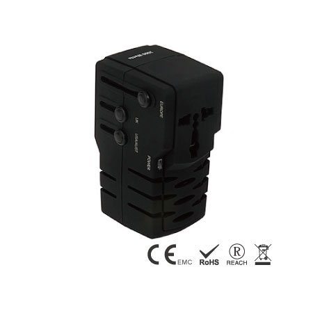 2000W電壓轉換器內建萬用插座及四種插頭,可將220-240V的市電轉換為100-120V電源使用,以適用於美式110V單電壓的可攜式設備。當美國人在歐洲旅行時,萬用旅行變壓器可適用高達2000W的可攜式設備,例如吹風機。選擇您需要的合適轉換插頭,僅需將變壓轉換器插入牆壁電源插座,即可使用26W至2000W的攜帶型電熱式設備。本產品具備精巧紮實的專利設計,是易於攜帶型的電壓轉換器。它也是旅行者必備的電壓轉換配件,工程設計具備過電流、過溫、短路及保險絲保護線路,以確保您的使用設備安全。