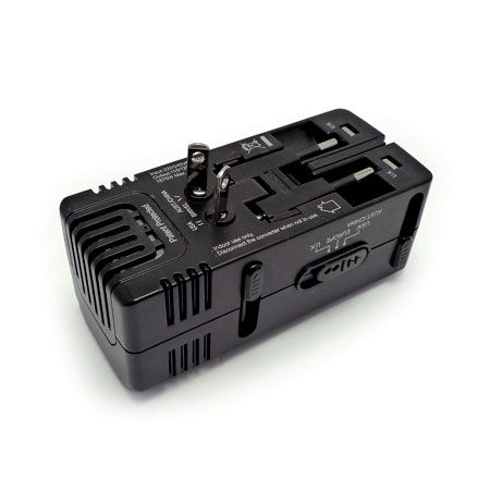 具備USB充電功能的1875W電壓轉換器不僅專門設計將220/240V市電轉換100/120V電源使用,以適用額定功率26~1875瓦的美國可攜式設備,並且同時為攜帶式設備提供USB充電端口。內置多國插頭的電壓轉換器可適用全球電源插座,其具備USB充電可連接平板電腦,智慧手機,數位相機或其他5V DC電子設備,是可攜式設備完美的充電解決方案。