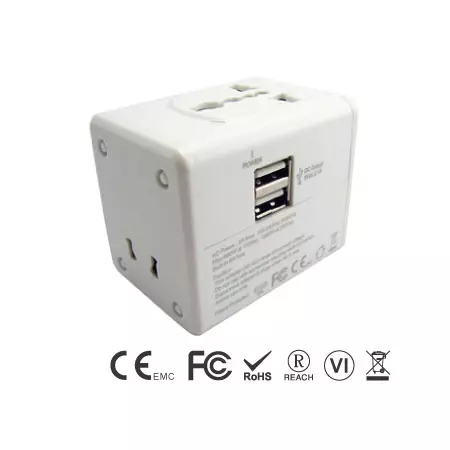 歐格萬用轉換插頭具有推鈕滑動設計,可推出四種不同規格的插頭 ( 美規 / 歐規 / 英規 / 澳規 ),四種規格轉換插頭為一體,適用於全球超過195個國家,符合各國充電標準。根據所用插座標準,推出對應的插頭按鍵,此時鎖定插腳,即可使用。為確保使用安全,一次只能推出一個插腳,當一個插腳推出未收回時,另一個插腳無法正常推出。全球適配器具有兩個USB充電接口可同時為您的2個設備充電,如平板電腦,手機,智慧手機和數位相機等多種3C週邊。 採用AC寬電壓100-240V設計,也可以接受2極插頭或3極插頭電源插頭,滿足不同國家不同設備的充電需求 ; 但, 不具備電壓轉換。