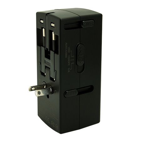 此款雙插座萬國旅行轉換器同時包含兩個USB充電輸出接口,可以同時為兩個設備充電。 兩個USB輸出接口總輸出電流為2.4A, 單USB充電接口輸出最大為2.4A,適用於各種智慧型手機ˋ平板電腦ˋ數位相機等數位設備充電。