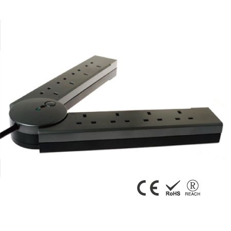 可折疊形插座設計,插座本體可折疊和打開的專利結構加上可使用6個英式插座孔和兩個插座孔是具有擴大間距的插孔可滿足需要插入較大變壓器的電子設備產品的需求, 增加了使用的方便性和靈活性;獲得專利的可折疊形特殊機構設計結合了方形(折疊雙排)和長形(打開用)外觀。可以將其放置在牆壁的角落或辦公桌或桌子的角落,以使所用設備的電源線不會纏結和混亂,除了使生活環境更加整潔外,也可避免因長久糾纏設備電源線引起的電線負荷。 該系列產品還可以選擇電話和同軸線保護以及USB充電保護設計,非常適合在計算機房,工作站,家庭娛樂中心以及需要大量電子設備的地方使用,從而可以安全高效地充分保護珍貴的設備。