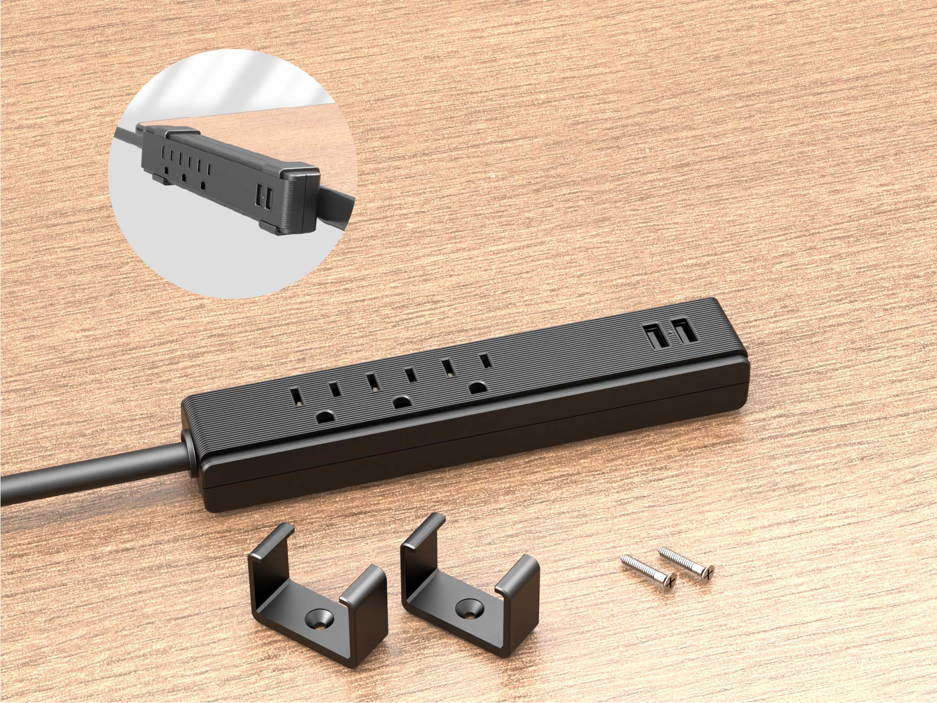 這款輕薄造型的電源延長線插座一般安裝在桌邊, 讓您很容易就能接觸到電源插座, 而不必彎腰到桌子底下. 選擇配件有支架夾具和螺絲可供安裝. 支架夾具上有安裝孔, 您可以把插座安全地固定在各種適用的地方,包括工作臺, 壁掛, 檯面等, 這絕對可以為你節省桌面空間, 並避免桌面雜亂.